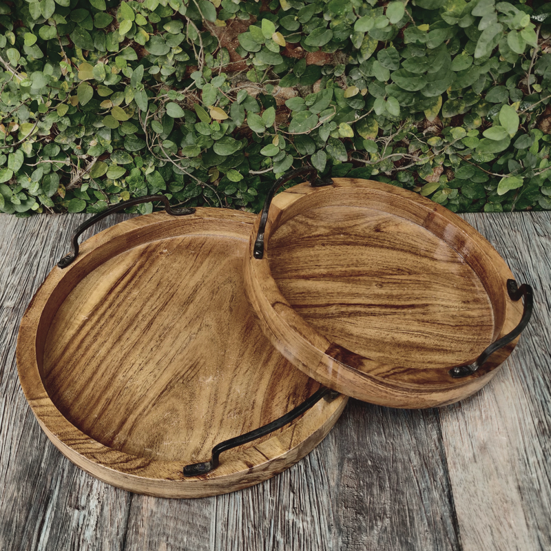 Serving Hexagon Tray Set of 2 with Iron Handle