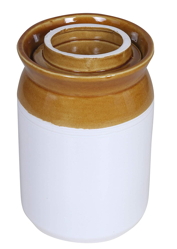 RAJ Royal Hand Painted Ceramic Cornichon Storage Jar for Pickle White Pottery Food Storage Jar with Lid For Kitchen, Home, Hotel, Restaurant, Achar Barni Set (Cream, 1 KG)