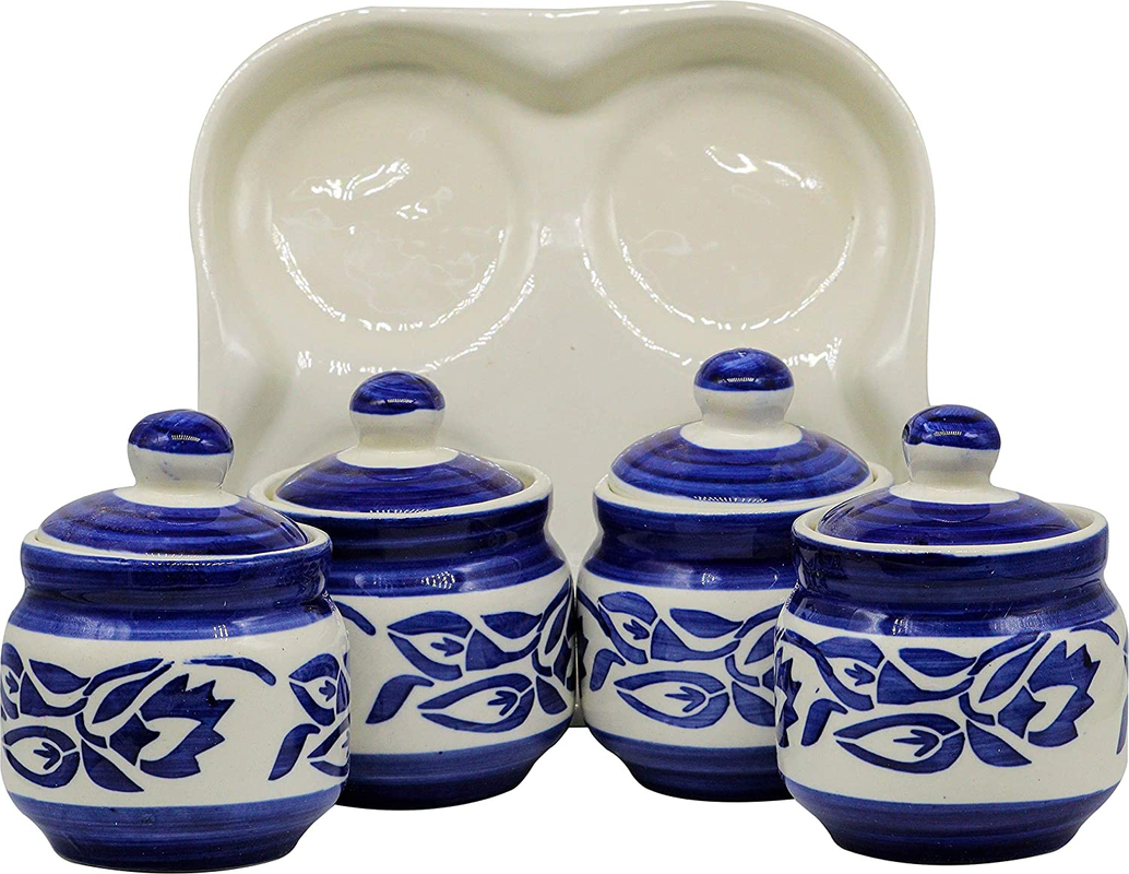 RAJ ROYAL Ceramic Food Storage Container with Lid & Tray Set of 4 Storage Canister (Blue, 200 GR)