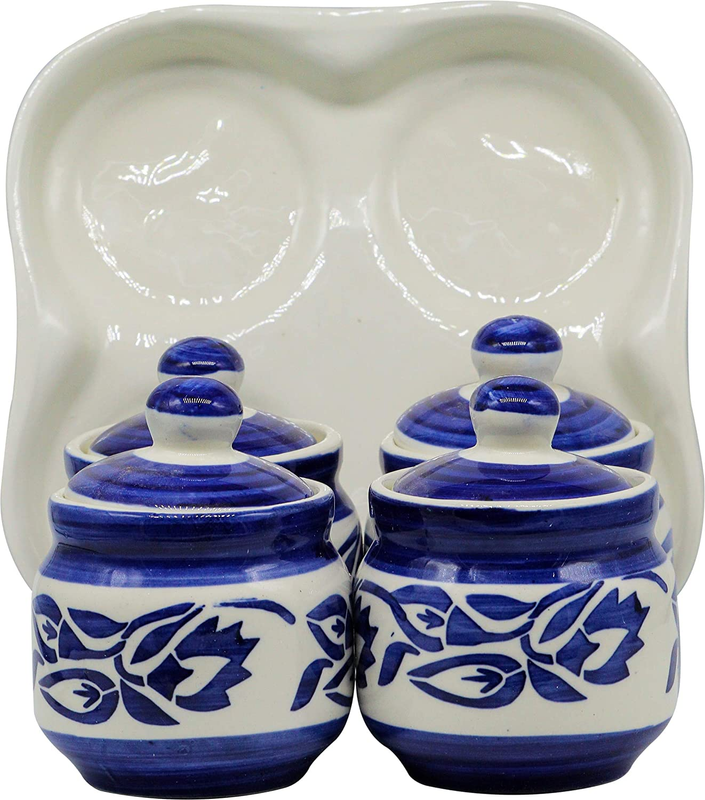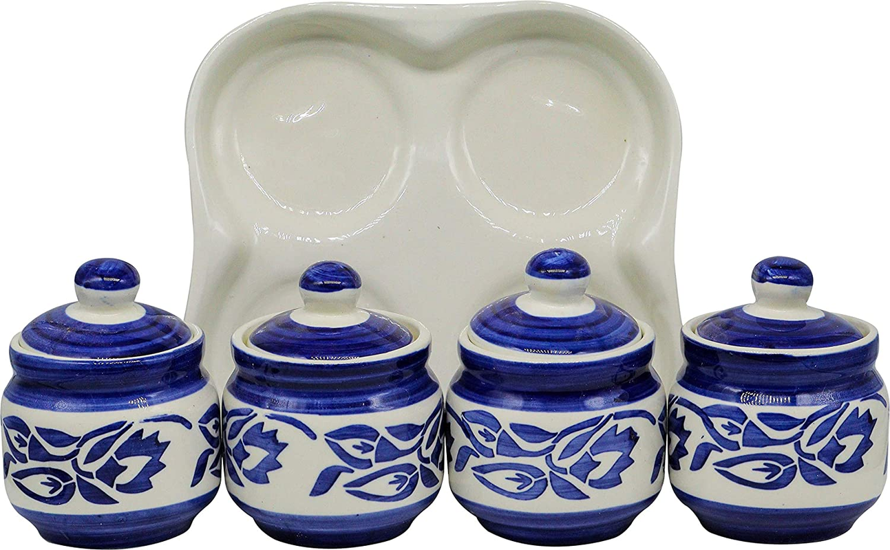 RAJ ROYAL Ceramic Food Storage Container with Lid & Tray Set of 4 Storage Canister (Blue, 200 GR)